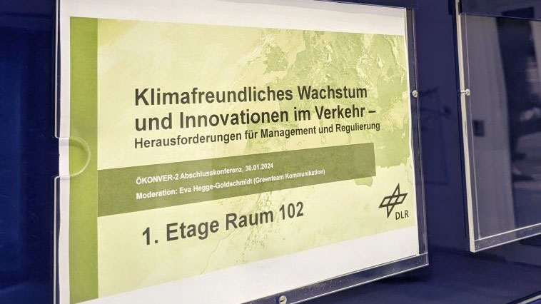 At a final conference on 30 January 2024 at the WissenschaftsForum am Gendarmenmarkt in Berlin, the project team from the five participating DLR Institutes for Air Transport (project leader Dr Janina Scheelhaase), Transport Research (project spokesperson Prof. Dr Gernot Liedtke), Transport Systems Technology, Vehicle Concepts and Networked Energy Systems presented project highlights to interested guests from business and politics under the overarching theme of "Climate-friendly growth and innovations in transport - challenges for management and regulation".