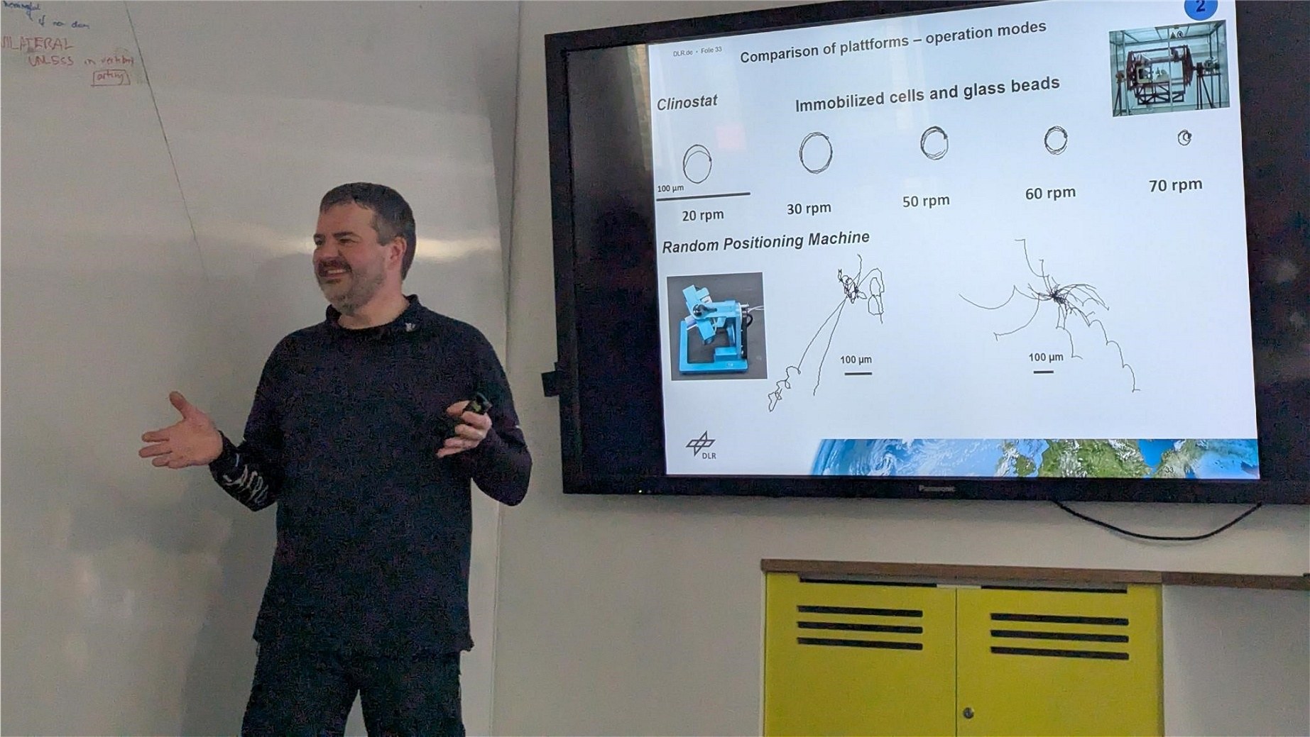 Dr Jens Hauslage presents the results of comparative studies on the simulation of weightlessness in the laboratory at La Trobe University in Melbourne.