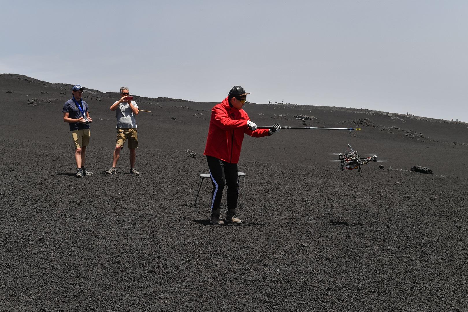 Ardea, the pathfinder, completes a test flight in strong winds, exceptionally secured on a hook.