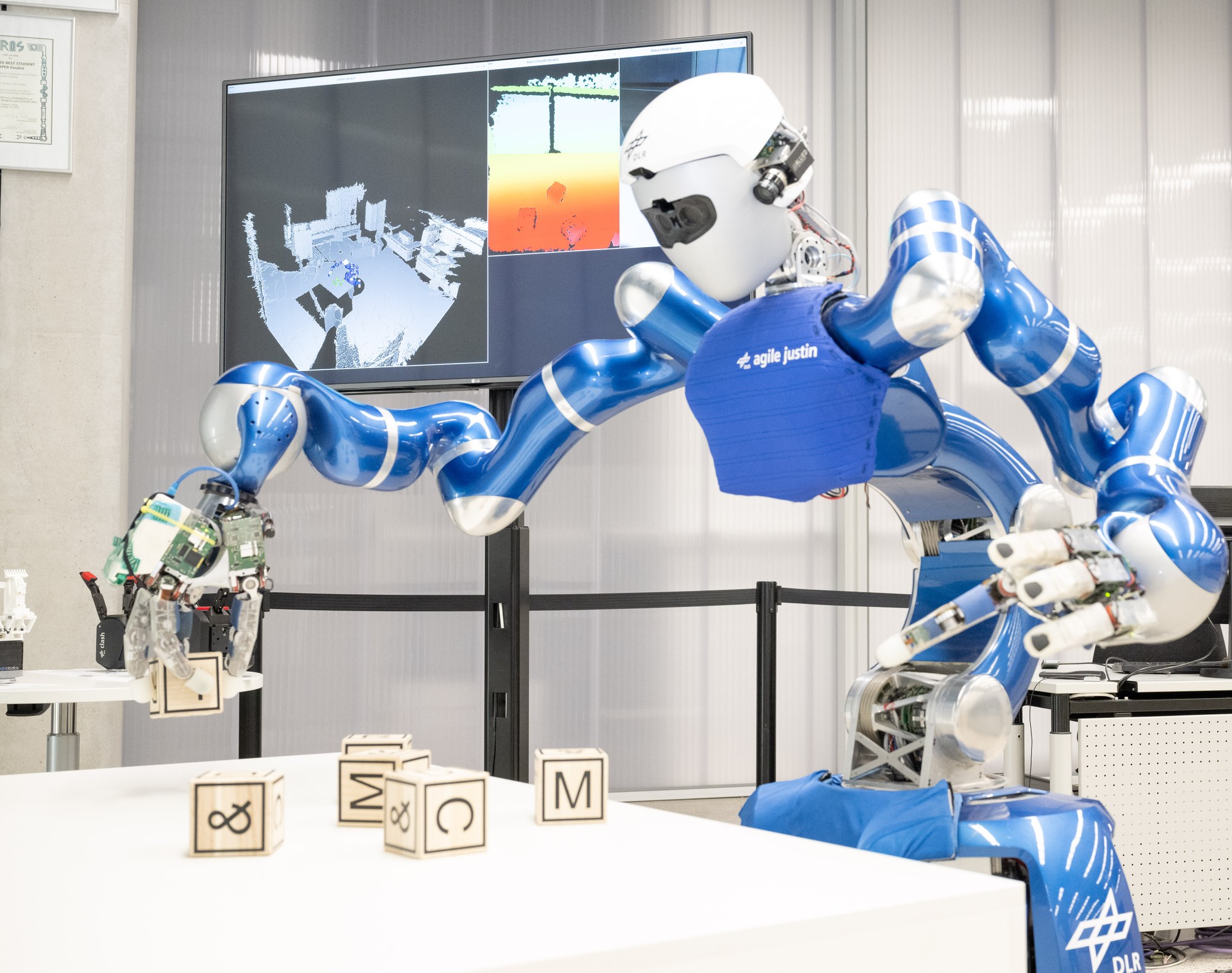 Before Justin moves, the robot calculates the dimensions of the cube and the best strategy.