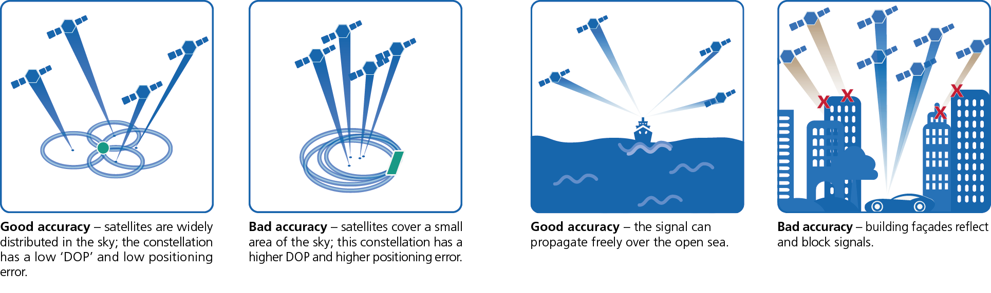 For a receiver on Earth to determine its position, it needs data from at least four satellites. The more satellites there are, the more stable and accurate the positioning becomes.