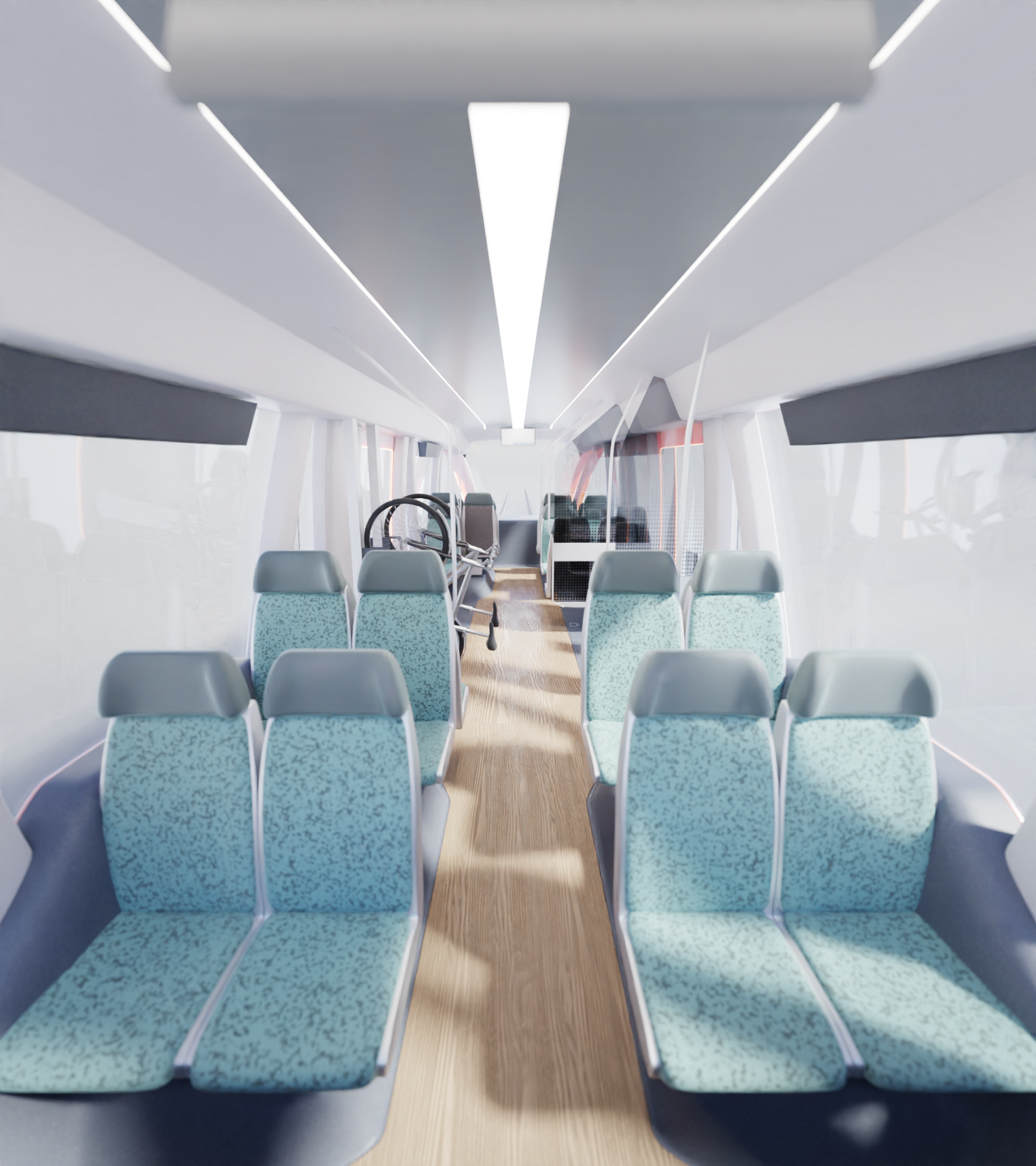 The interior of the NGT TAXI is accessible and offering plenty of storage space. It will be automated and travel primarilyon secondary railway lines, providing fast and flexible connections in rural areas.
