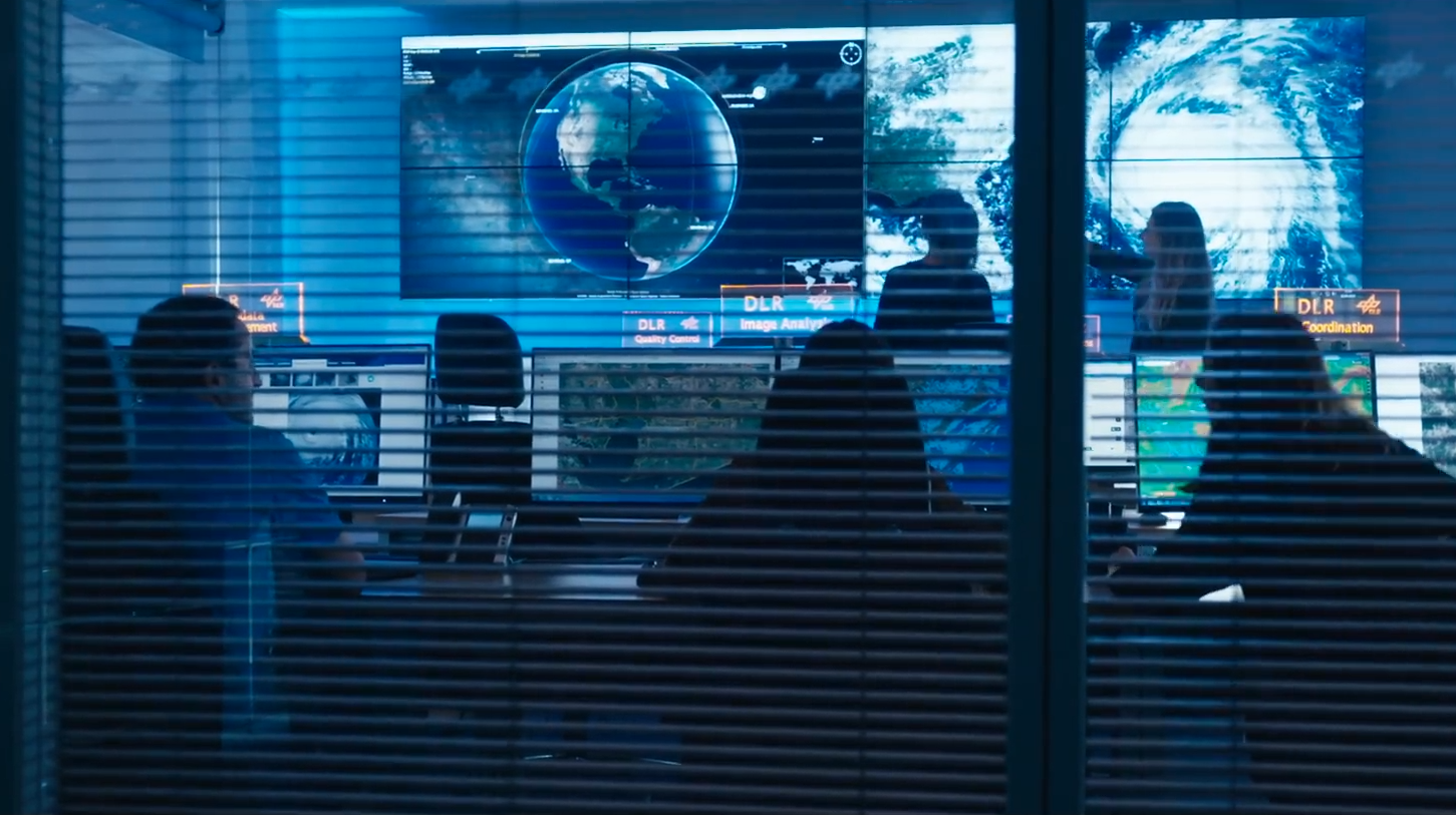 All the information comes together in the operations room of the Center for Satellite Based Crisis Information (ZKI). This is where situation images are created using Earth observation data and other geodata.