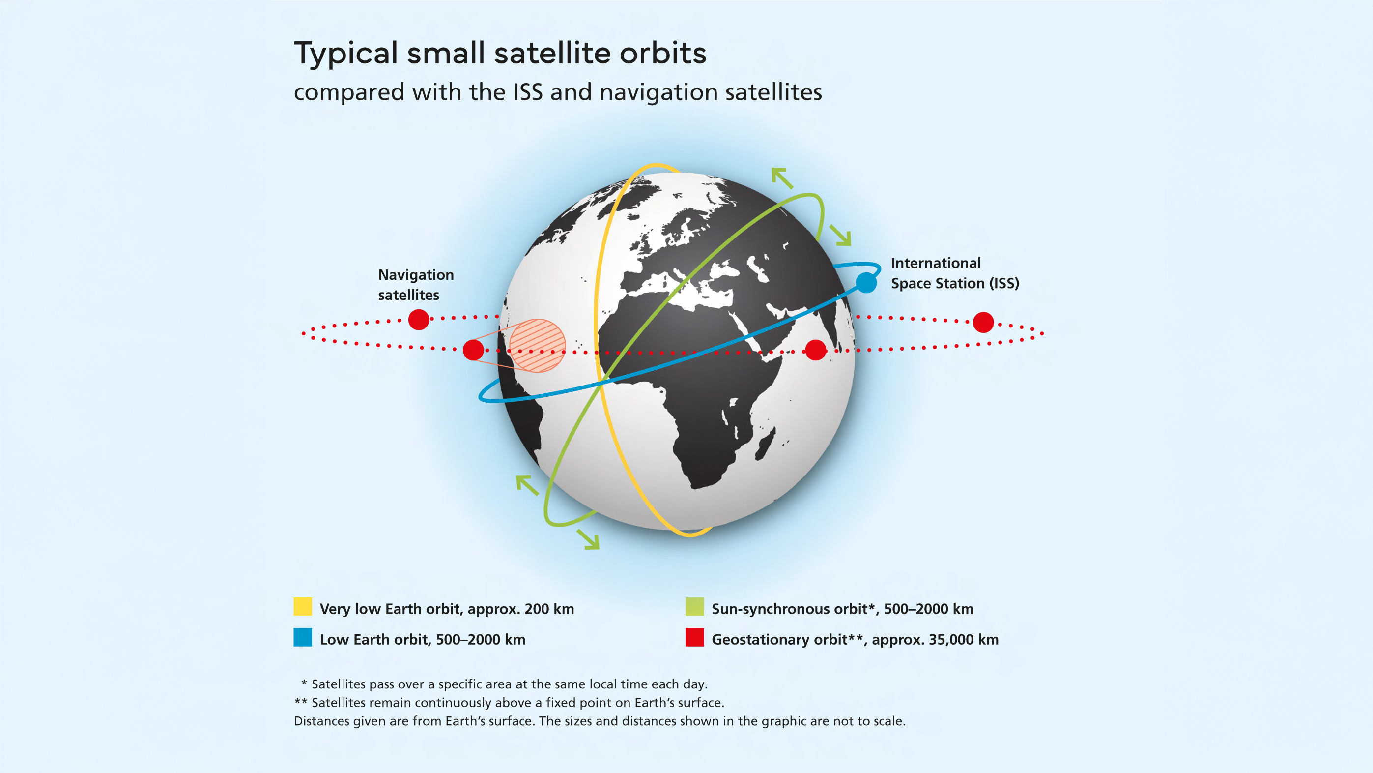 Some are no bigger than a matchbox, yet the future of space technology belongs to them: small satellites. The smallest, the cube-shaped PocketQube, measures just five centimetres along each edge. The real stars of the family, however, are undoubtedly the CubeSats. With dimensions of ten by ten by ten centimetres, they can be used for a wide variety of space applications, produced inexpensively on an industrial scale and combined into modular systems of almost any size. Beyond their shape, small satellites are classified by weight into categories such as pico, nano, micro and mini. But as much as the members of this family differ in size, weight and function, they all have one thing in common – they weigh no more than 500 kilograms.