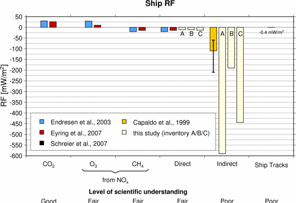 Lauer, A., V. Eyring, J. Hendricks, P. Jöckel, and U. Lohmann: Global model simulations of the impact of ocean-going ships on aerosols, clouds, and the radiation budget, Atmos. Chem. Phys., 7, 1-19, 2007.