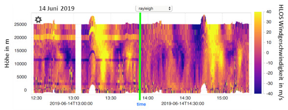 A few weeks after launch, horizontal stripes were noticed in the measured wind curtains (see Figure 2). These obvious measurement errors could be attributed to single pixels on the CCD detector (CCD: charge-coupled device) which showed increased dark current rates, so-called "hot" pixels. This systematically increased dark current for single pixels of the CCD leads to a small increase of the constant background of the lidar signals, which has to be measured by a calibration in order to be corrected afterwards. Already in June 2019 the influence of these "hot" pixels could be corrected with a method, which was developed at the DLR Institute of Atmospheric Physics.