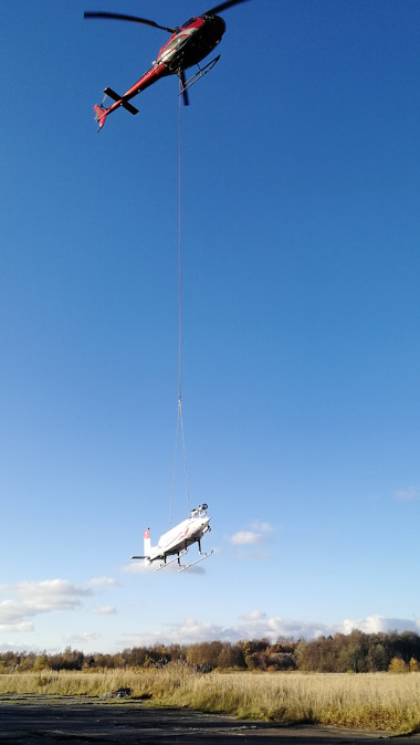 After the first successful methane measurements over the southern Baltic Sea only one week after the Nord Stream leaks occurred at the beginning of October, IPA scientists together with the Institute of Flight Guidance (IFF) of the Technical University of Braunschweig have now carried out follow-up measurement flights in the region. Starting once again from the Polish coast near Kołobrzeg, a total of two helicopter flights with the towed probe HELiPOD could be carried out on November 15 and 16, 2022. The HELiPOD, operated by the IFF and equipped with an extensive payload for atmospheric measurements, is flown as a sling load on an approximately 25-meter-long rope under the helicopter. For the new flights over the Baltic Sea, the helicopter was additionally equipped at short notice with a special methane instrument from the DLR Institute of Atmospheric Physics. This instrument can be used to determine the origin of methane from its isotopic signature, for example to distinguish between biogenic and fossil sources.