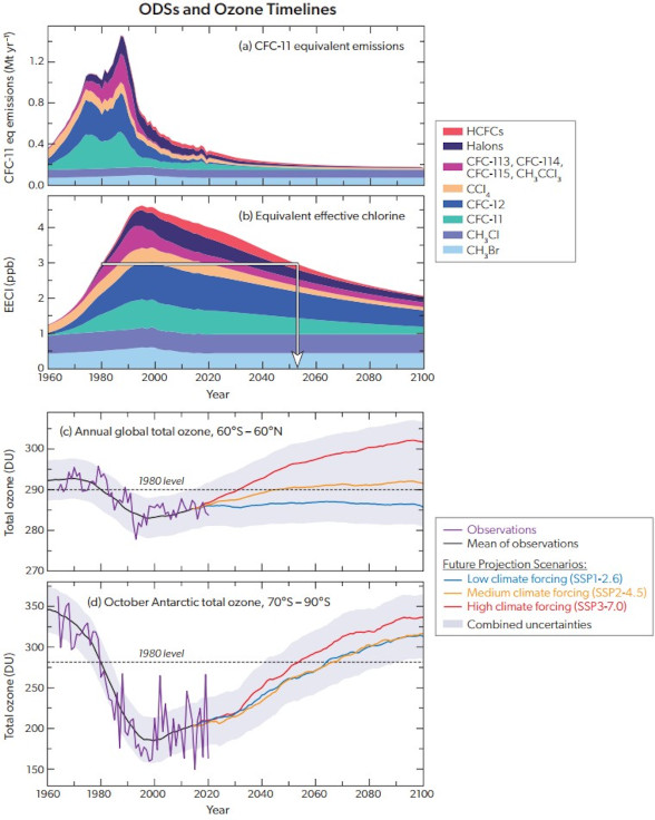 - World Meteorological Organization (WMO). Scientific Assessment of Ozone Depletion: 2022, GAW Report No. 278, 509 pp.; WMO: Geneva, 2022.