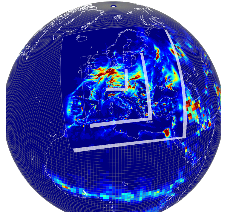 We use the MECO(n) model to support (aircraft) measurement campaigns. This includes ´providing tailor-made forecasts with customised diagnostics for planning research flights, as well as analysing the measurements and placing the results in a scientific context. We also use MECO(n) to analyse the impact of anthropogenic emissions, especially from the transport sector, on air quality under different climate conditions. On a regional scale, MECO(n) is used with spatial grid resolutions between 50 km and approx. 1 km.