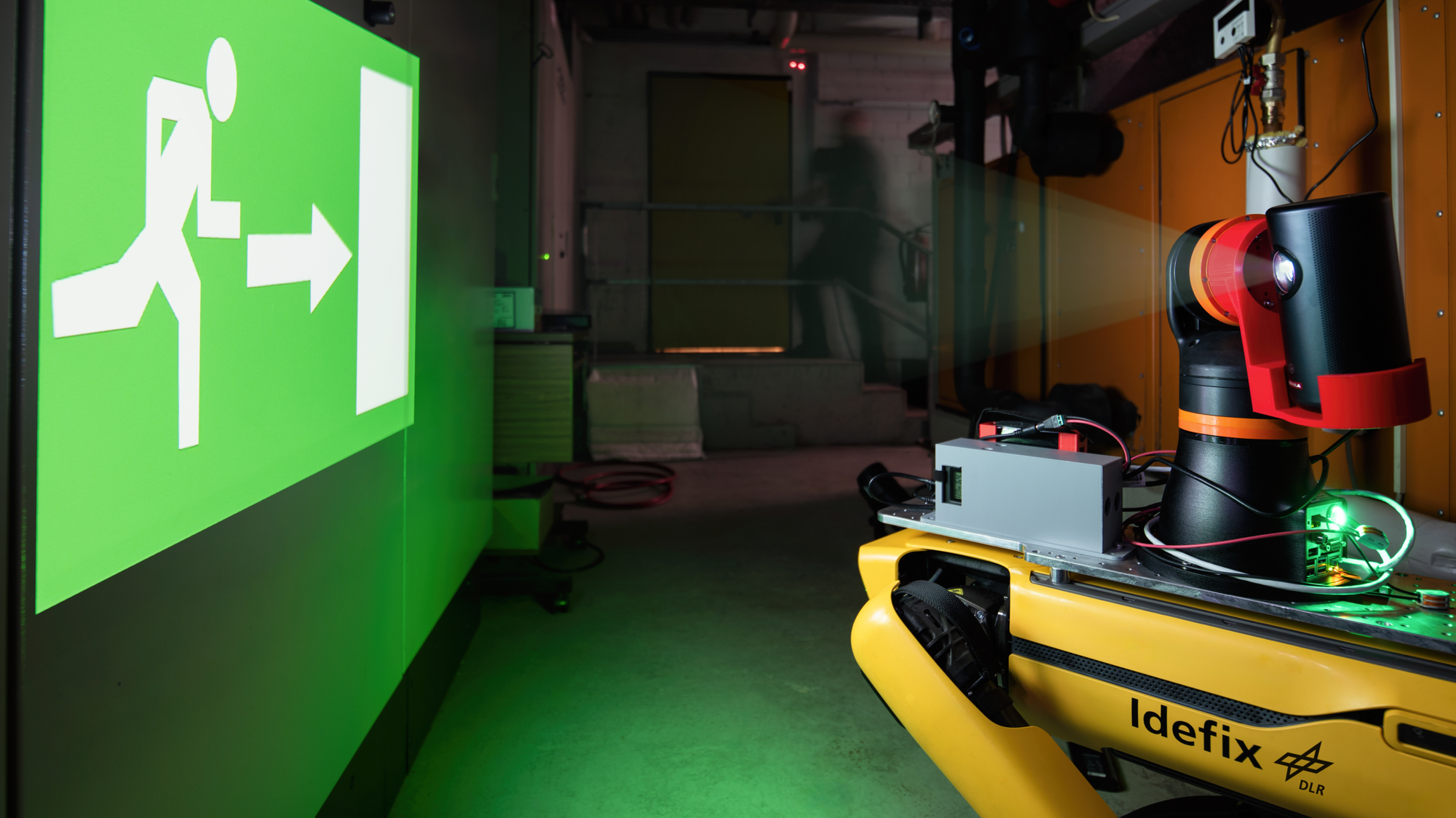 Am Institut für den Schutz terrestrischer Infrastrukturen entwickeln wir verschiedene Aufsätze – sogenannte Rucksäcke – mit denen der Roboter im Ernstfall die Rettungskräfte unterstützen soll.
