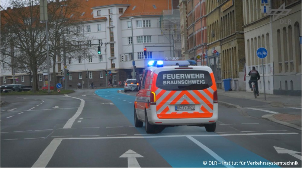 Increasing traffic problems in urban areas are making it more and more difficult to comply with the legally prescribed time until the emergency services arrive at the scene. Even today, despite the use of special signals such as blue lights and sirens, the emergency services are repeatedly hindered or involved in accidents with emergency vehicles.