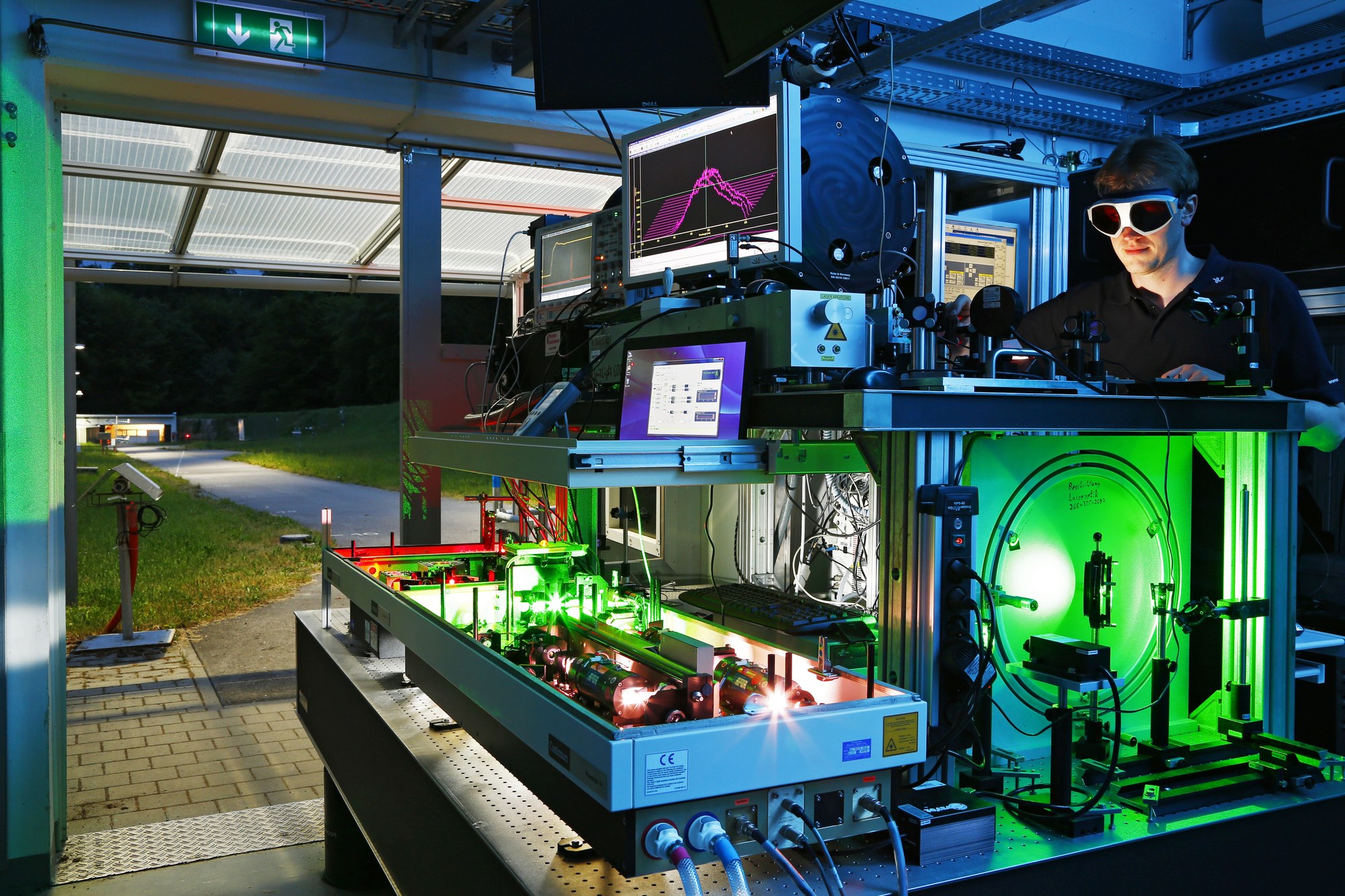 The DLR Institute of Technical Physics is investigating the effects of realistic environmental conditions on the propagation and effectiveness of laser beams. Researchers are testing the use of different lasers over long distances on a 130-metre optical free-beam path at DLR’s Lampoldshausen site. One focus of this research is the possibility of detecting hazardous substances from a distance with the use of a laser, referred to as stand-off detection.