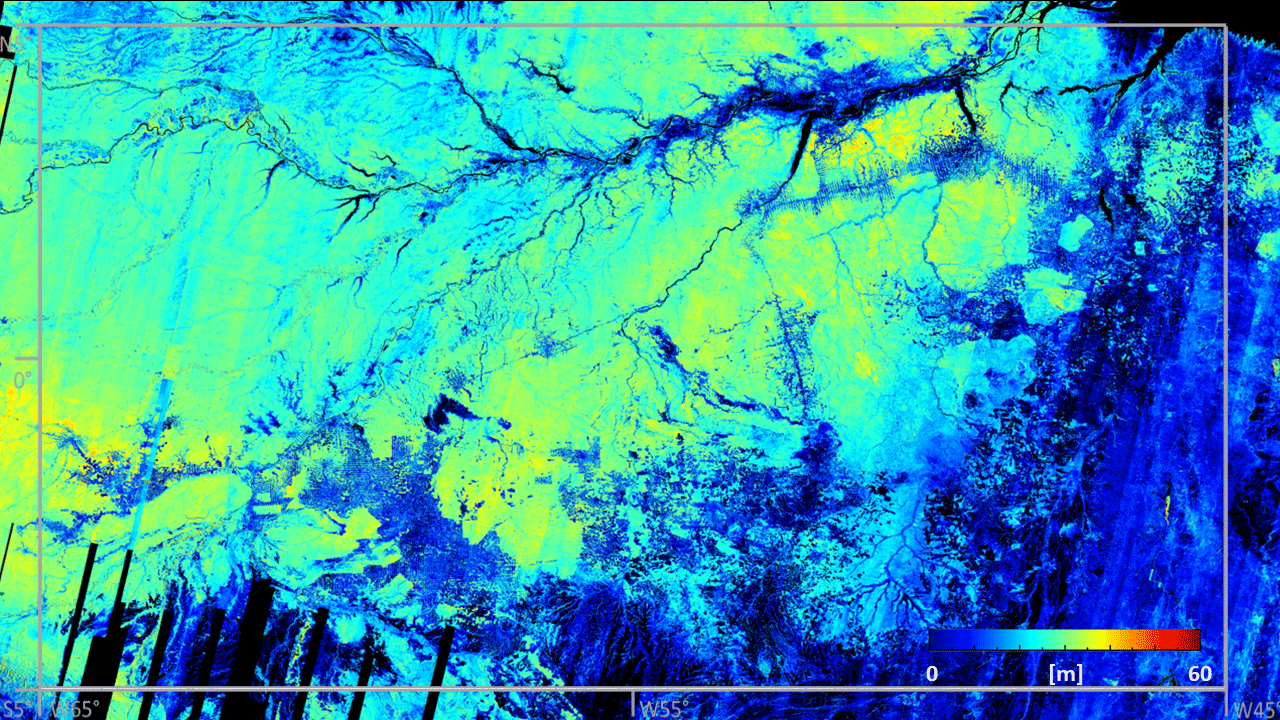 Forest canopy height map of the Amazon basin derived by combining DLR’s interferometric TanDEM-X measurements and NASA’s GEDI lidar measurements.