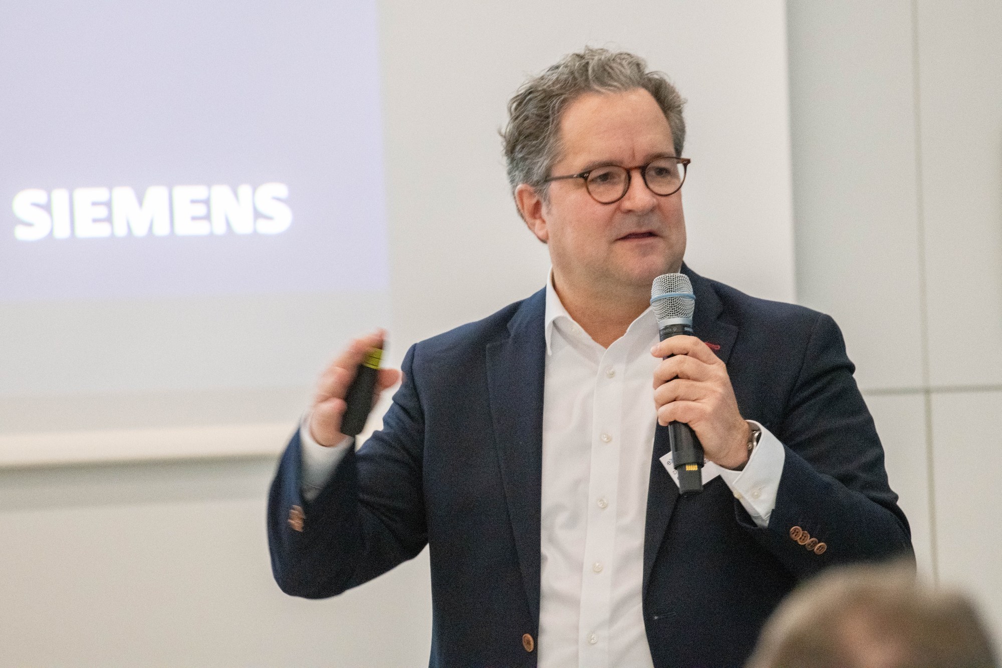 eXplore robotics 2024: Georg von Wichert (Siemens) during his presentation on robot-assisted production