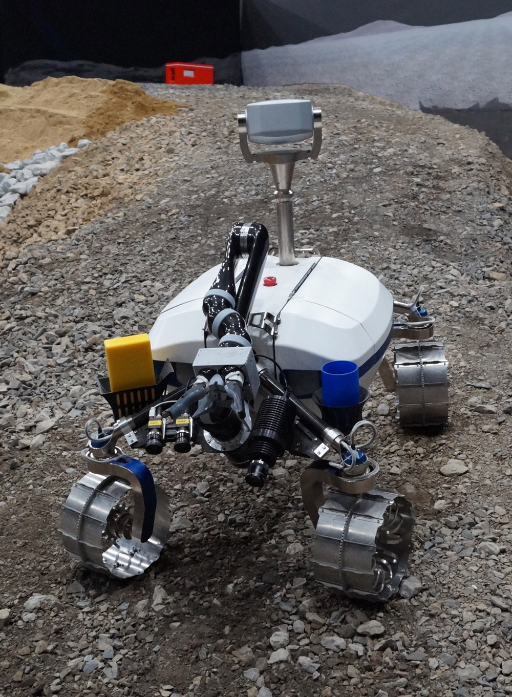 The SpaceBot Camp in Hürth near Cologne, Germany transformed a movie studio into a moon-like landscape. Each of the ten participating teams had two days to prepare their robot(s) before presenting their system during their sixty minutes time slot in front of a public audience. A groundstation team was allowed to communicate with the robot, but was located in another room and thus had no visual contact to the competition area. In addition, a simulated two seconds delay (one-way) was added to all communication from and to the rover, which is similar to the real communication delay between earth and moon. Furthermore, the communication uplink from the groundstation to the robot was blocked except for up to three five-minute checkpoints. These limitations of manual intervention constrained the groundstation team to merely monitor the robot's autonomous behavior.