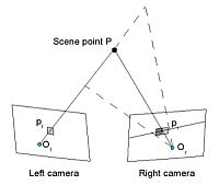 The former step is generally a time consuming and error prone search operation within the images, which is an important research topic. The latter one is an exact geometric calculation.