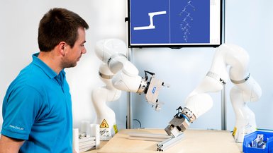 The institute is researching various planning units and methods for reliable execution. Central to this are the flexibility and degree of autonomy of the robotic systems: an algorithm finds suitable assembly sequences that can be executed by the system. Methods for grasp planning, automatic analysis of reachability in the work cell and collision-free planning of movements make such systems particularly flexible - also with regard to different product variants. Adaptability to new tasks is central. The idea that the robot has capabilities that can be easily reused in different situations is implemented throughout, from planning to execution. In one application example, a robotic system assembles aluminum profiles into complex structures. The system can manufacture different products, which are configured via an easy-to-use tablet interface. The setup consists of two LBR iiwa lightweight robots from KUKA. Their special characteristics enable reliable execution, which is not even affected by uncertainties in the work cell. The integrated force sensor technology makes sensitive assembly possible. DLR is developing methods that exploit these fundamental properties of lightweight robots, for example, to make assembly tasks more robust against uncertainties and to execute them more efficiently.