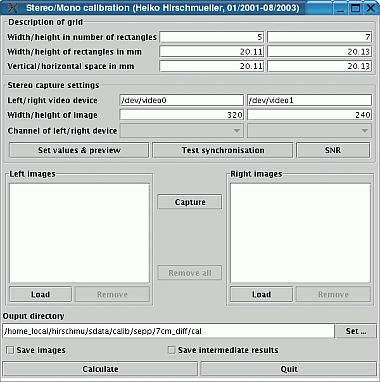 - Calculating all parameters from known coordinates of all calibration points in a world coordinate system and the corresponding projections of these points in several images from different viewpoints. The calculation is done using the Zhang and Sturm and Maybank algorithm.
