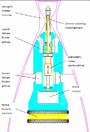 The manipulator of ESS, equipped with a capturing tool, must follow the residual movements of a selected object on the target (e.g. the main thruster) by means of an image processing system whose data are passed through an extended Kalman filtering process.