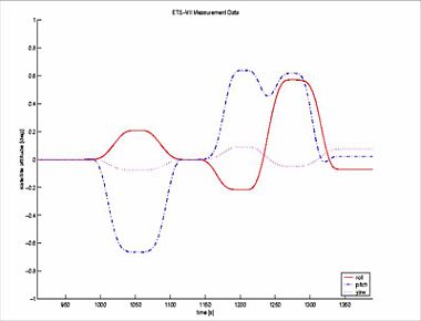 Other factors, such as the interaction of the satellite magnetic dipole with the Earth magnetic field, solar pressure and aerodynamic drag were taken to be second order effects. The aerodynamic drag was in fact measured by NASDA and was found to be small in size. Finally, moving parts on the satellite, such as the solar panels and the communications antenna, were found to give a small disturbance to the motion of the satellite about the pitch axis, after simulation.