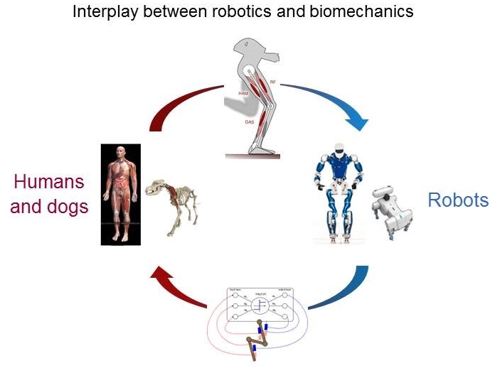 The central hypothesis of the research project is that biological locomotion is fundamentally determined by the biomechanical resonance properties of the respective body, and that a scientific breakthrough in robotic locomotion essentially depends on the understanding and use of these phenomena. When the body is designed so that walking and running correspond to intrinsic periodic movements of the system, control becomes simple. Robustness and energy efficiency are then the natural consequences. However, we are lacking the mathematical methods today for the description, analysis, design and control of nonlinear resonances and elastically resonant robots. Therefore, the project’s primary goal is the design of a new theory of nonlinear oscillations that can be applied to elastic multi-body systems, both biological and robotic.