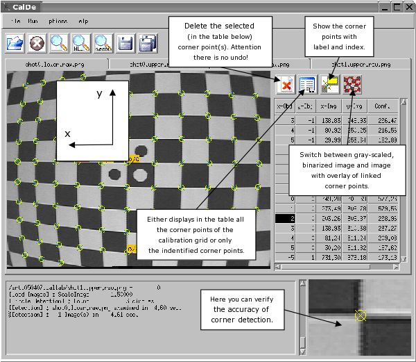 - Do not bother to delete erroneously detected corners in DLR CalDe. DLR CalLab is best suited for that by using the residuals histogram plots on the right-hand side after a standard calibration attempt including erroneous data.