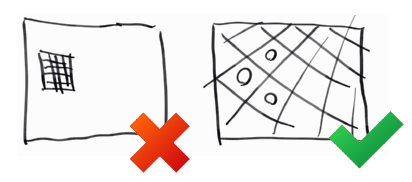 - Try to fill the images with corners. It doesn't matter if part of the calibration pattern cannot be seen. A complete coverage of the image area is paramount at as many images as possible. If the pattern is too small (e.g. if the camera is focused to longer distances and your pattern is projected in smaller areas -- even if it is size A2 or A1) you should opt for central projections.