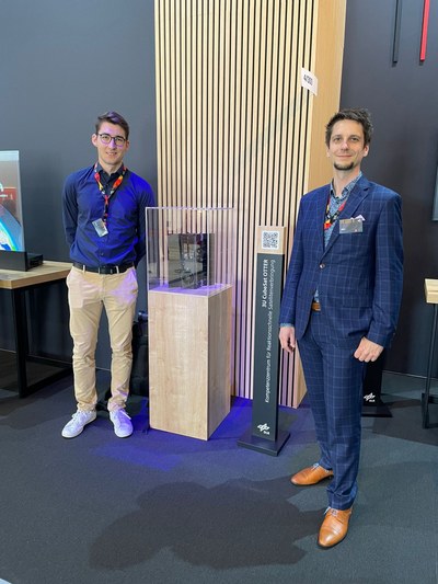 RSC³ employees Jonas Berlitz (left: Ground segment) and Marc Hafemeister (right: Space segment) at RSC³ stage