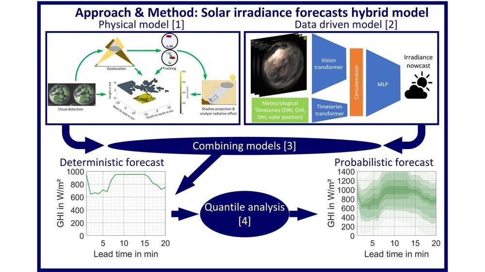 - Generative methods that predict several possible continuations of previous observations, from which conclusions about solar irradiance can be drawn