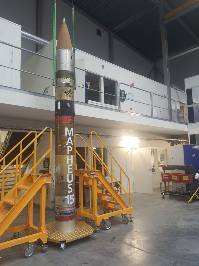 On November 11, 2024, the MAPHEUS-15 payload (337 kg) was launched on a sub-orbital flight with a two-stage rocket from the Esrange spaceport near Kiruna, Sweden. During this flight, the payload remained in zero gravity for more than 6 minutes. It reached the apogee (farthest point from Earth) at an altitude of around 310 km and landed back on Earth after the flight largely undamaged at around 70 km from the starting point.