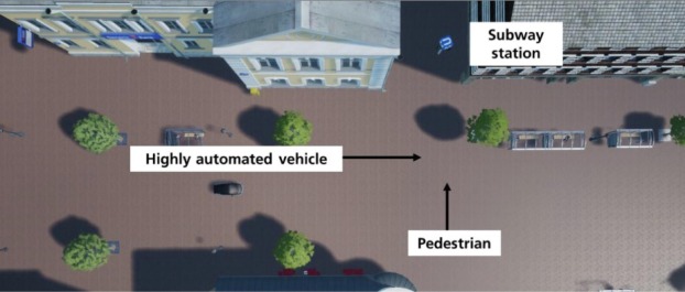 Figure 1: Bird's eye view of the test environment (test subjects saw the situation from an egocentric perspective).