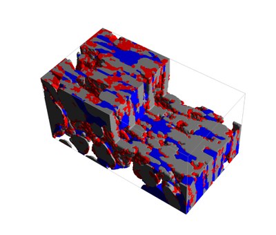 Functional principle of a lithium-ion battery: Two porous electrodes, separated by an electrolyte-soaked separator, enable the exchange of lithium ions during the charging and discharging process. The Institute of Technical Thermodynamics is developing mathematical models to describe the transport and reaction processes in battery cells on various scales in order to optimize the service life of batteries.