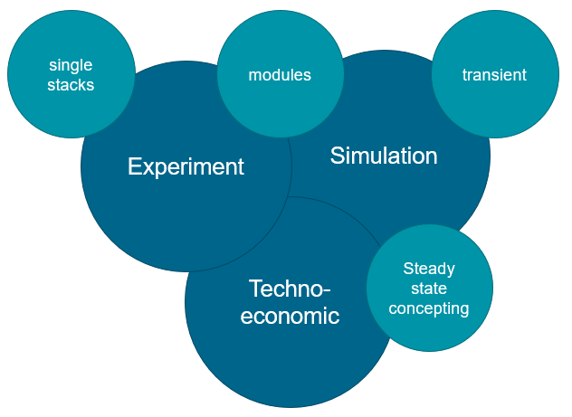 - Experimental analysis of CO, CO2, steam and water electrolysis (AEL & SOEC) at the module level, consisting of several stacks