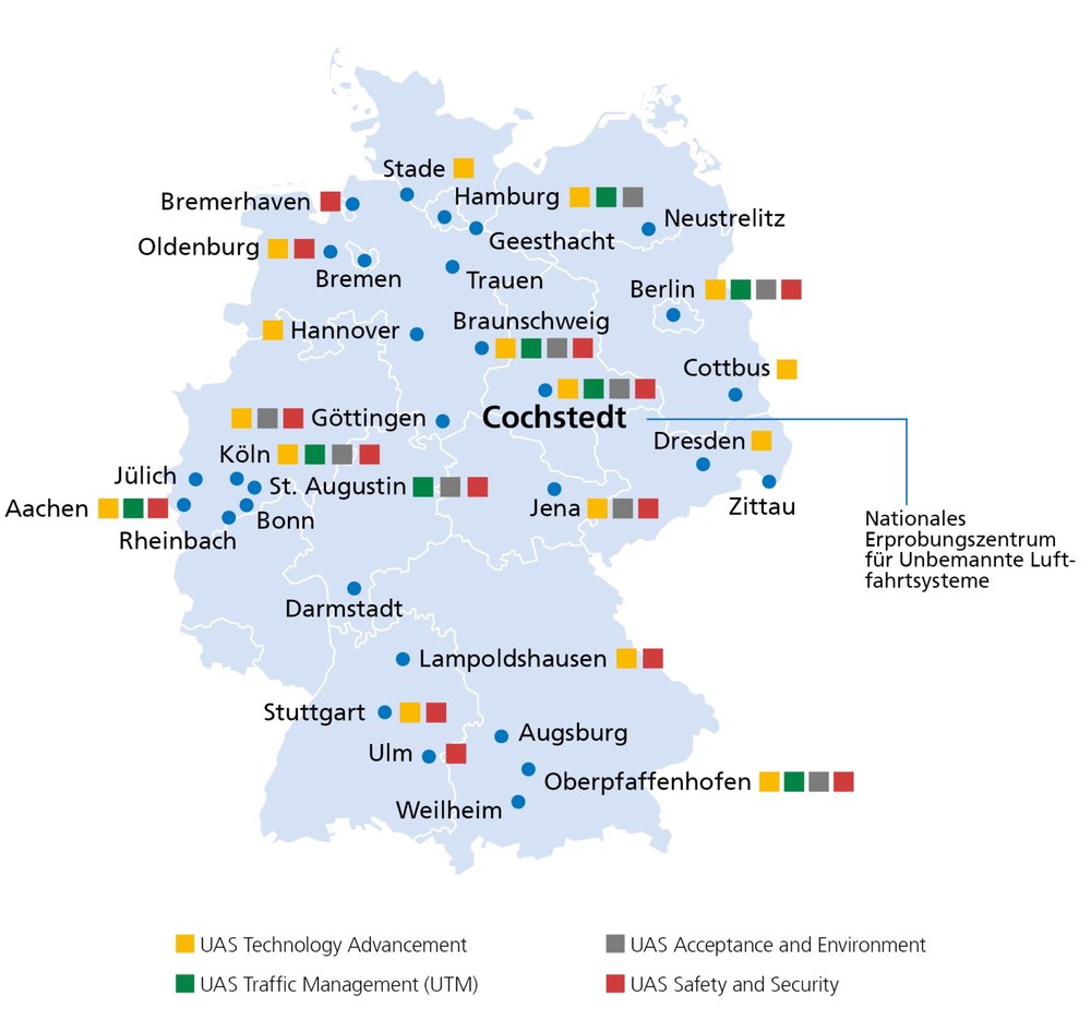 In order to position Germany as a location for the future of unmanned aviation the German Aerospace Center is intensifying research in this area. The National Test Center for Unmanned Aircraft Systems at Magdeburg-Cochstedt Airport, which opened in 2021, currently establishes a highly innovative research network for unmanned aircraft systems (UAS) that is unique in Europe.