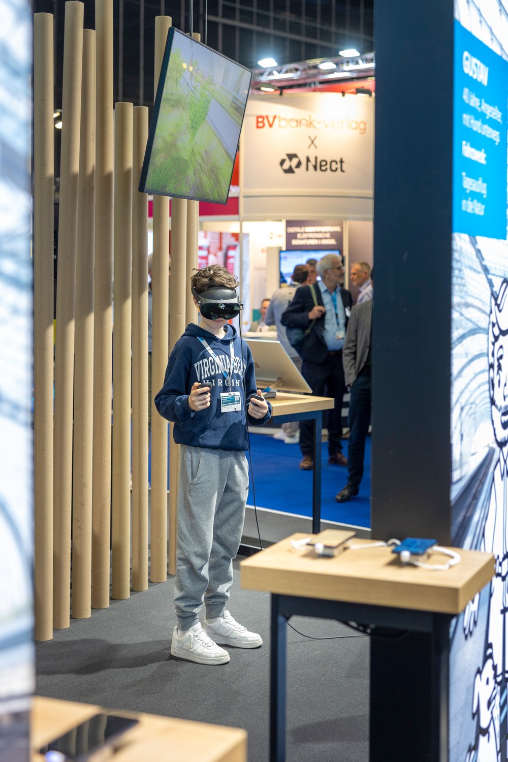 In addition to the personalised assistance system "Total Situation Picture at the Hub", which DLR had already presented at Innotrans, the VR children's world was also on show this time. Adults shrink to 1.10 metres eye level - this corresponds to the viewing height of around ten-year-old children and wheelchair users. While many street situations pose no problem in the adult world, things look different from a child's perspective. This becomes particularly clear when these challenges are removed - in the redesign scenario that children have come up with.