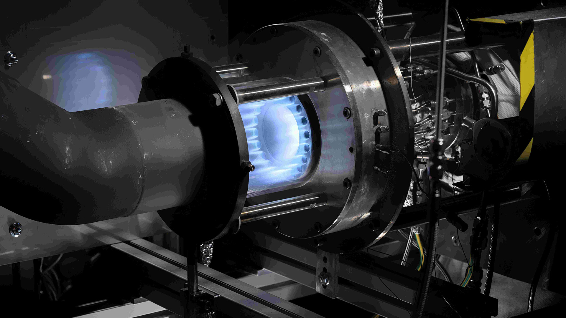 Using our expertise in gas turbine combustion, we develop fuel-flexible and low-emission combustion chambers in the department to make micro gas turbines even more robust and flexible. To this end, we rely on jet-stabilised combustion concepts that can be scaled particularly well and are, therefore, suitable for a wide range of performance classes. We have a number of modern laboratories and test benches at our disposal for development, where we analyse and optimise burner systems under atmospheric conditions, for example.