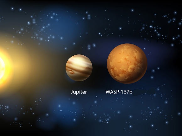 In the ideal, symmetrical case, the planet orbits around its star on a circular orbit and - provided its orbital plane lies on the observer's line of sight - changes the starlight in a characteristic way. If the planet is in front of the star, the star is dimmed. As the phase curve progresses, the observer sees an increasingly large part of the planet's surface, which is heated or reflected by the incident radiation from the star. In the case of the planetary system WASP-167, the conditions are more complicated: the light curve in the vicinity of the eclipse is asymmetrical: