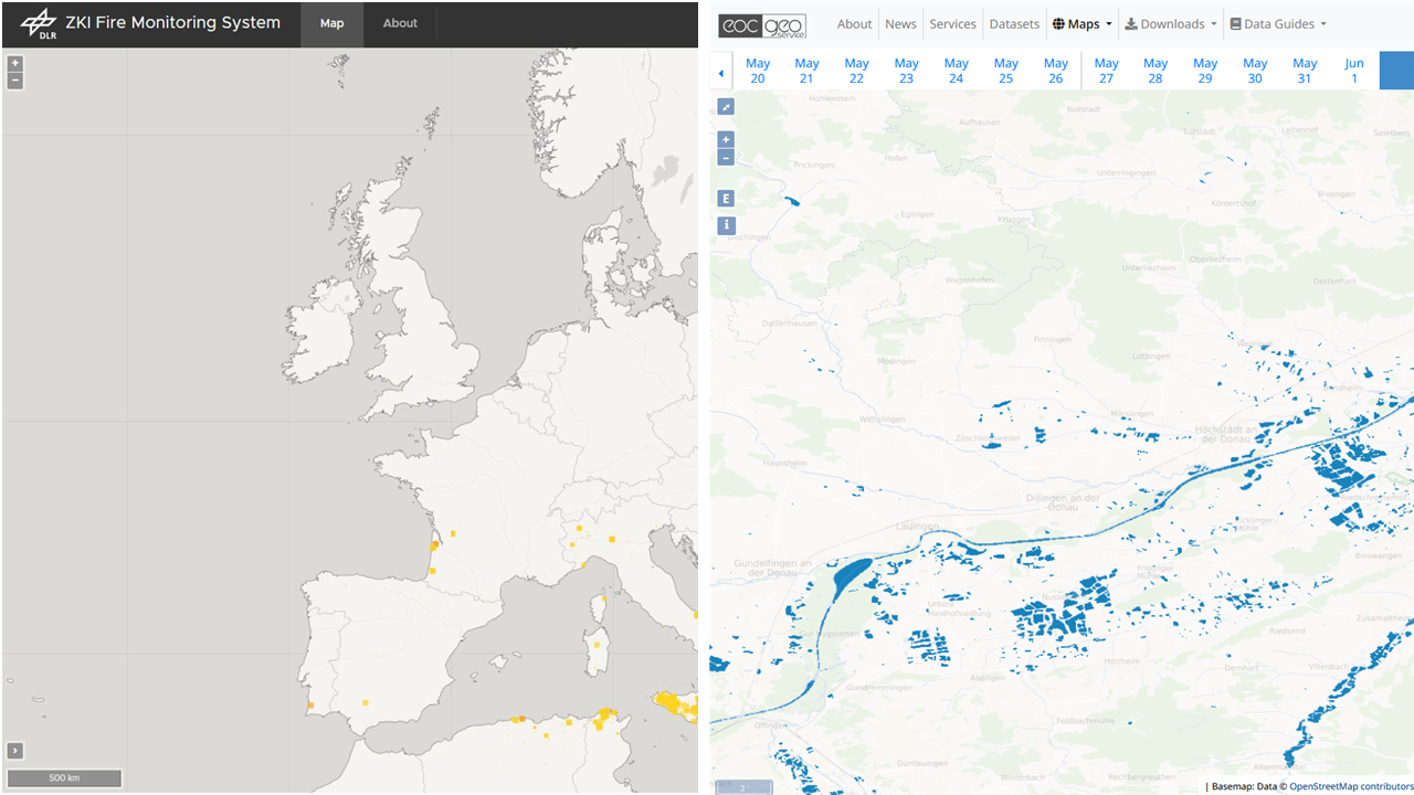 In addition to the activities of the ZKI, the Copernicus EMS, the SKD and formerly the ZKI-DE provide further services for crisis information at various national, European and international levels.